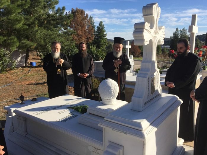 Μετά την Θεία Λειτουργία και την αναχώρηση του Μακαριωτάτου και των Αγίων Αρχιερέων, οι Σεβασμιώτατοι Χαλκίδος και Κορίνθου μετέβησαν στο Κοιμητήριο Χαλκίδος, όπου και τέλεσαν νεκρώσιμο τρισάγιο επί του Τάφου του μακαριστού Γέροντός τους, Μητροπολίτου Χαλκίδος κυρού Χρυσοστόμου του Α΄ (Βέργη), ενώ, όπως έχει καθιερώσει ο Σεβασμιώτατος Μητροπολίτης Χαλκίδος κ. Χρυσόστομος εδώ και πολλά χρόνια, δεν παρετέθη επίσημο γεύμα, παρά μόνον ο Άρτος και το καθιερωμένο εόρτιο γλυκό κέρασμα προς όλους, στην Εκκλησία.