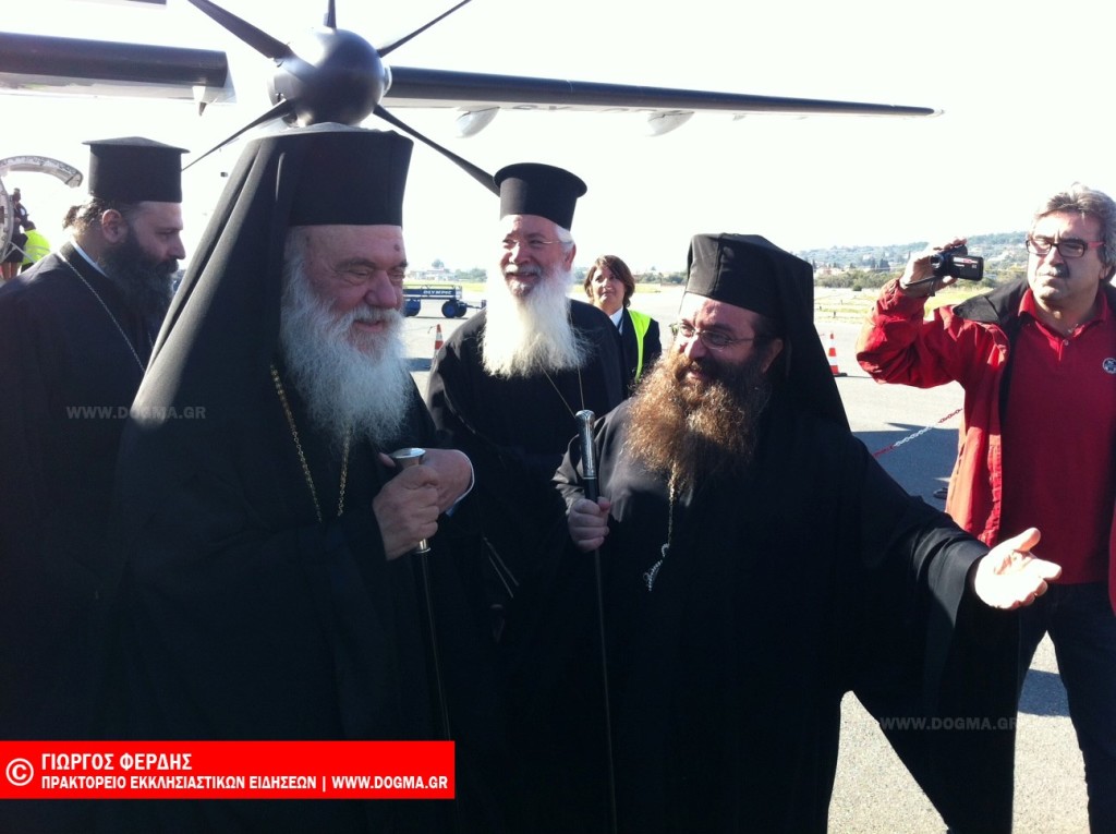 «Σας λέω δημόσια πως έχετε ανοιχτή πρόσκληση να έρχεστε στο νησί 365 μέρες το χρόνο» είπε στον κ. Ιερώνυμο ο Μητροπολίτης Χίου κ. Μάρκος που τον υποδέχθηκε στο αεροδρόμιο.
