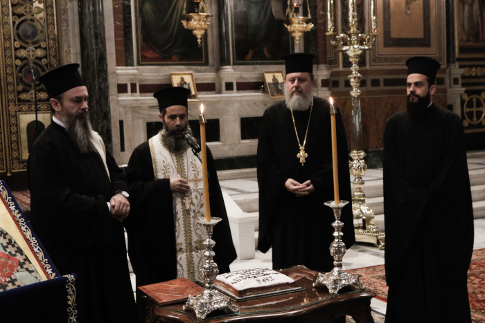 Στη συνέχεια τέλεσε την ακολουθία της βασιλόπιτας ο Πανοσ. Αρχιμ. Βαρνάβας Θεοχάρης με τον Αρχιδιάκονο π. Ιωάννη Μπούτση.