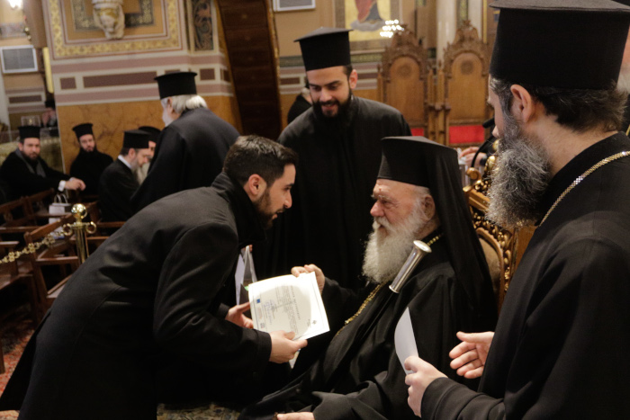 Ο Αρχιεπίσκοπος επέδωσε τις βεβαιώσεις μαζί με την ευλογία της βασιλόπιτας στους ιερείς της Ι. Α. Α. και τα λαϊκά μέλη.