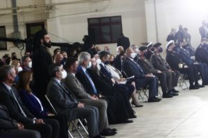 Παρέστησαν, ο Πρωθυπουργός κ. Κυριάκος Μητσοτάκης, ο Μητροπολίτης Μεγάρων και Σαλαμίνος κ. Κωνσταντίνος, υπουργοί, βουλευτές, ο Πρόεδρος και εργαζόμενοι του Ε.Κ.Α.Β., εκπρόσωποι των Ενόπλων Δυνάμεων.