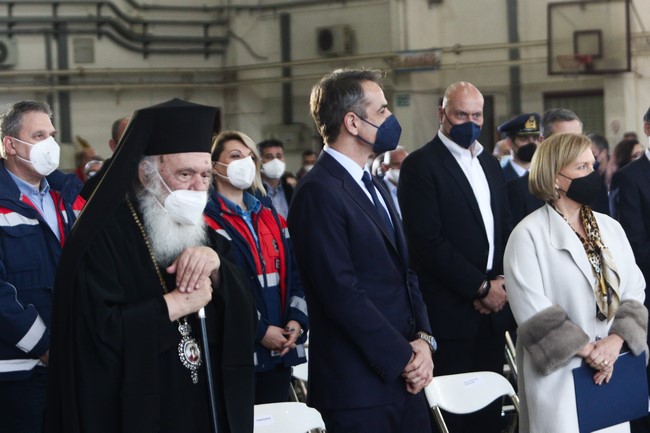 Παρέστησαν, ο Πρωθυπουργός κ. Κυριάκος Μητσοτάκης, ο Μητροπολίτης Μεγάρων και Σαλαμίνος κ. Κωνσταντίνος, υπουργοί, βουλευτές, ο Πρόεδρος και εργαζόμενοι του Ε.Κ.Α.Β., εκπρόσωποι των Ενόπλων Δυνάμεων.