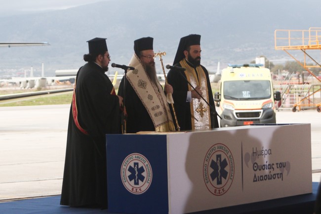 Παρουσία του Αρχιεπισκόπου Αθηνών και πάσης Ελλάδος κ. Ιερωνύμου πραγματοποιήθηκε το απόγευμα, στην αεροπορική βάση της Ελευσίνας, τιμητική εκδήλωση για τους διασώστες, τους νοσηλευτές και τους γιατρούς του Ε.Κ.Α.Β..