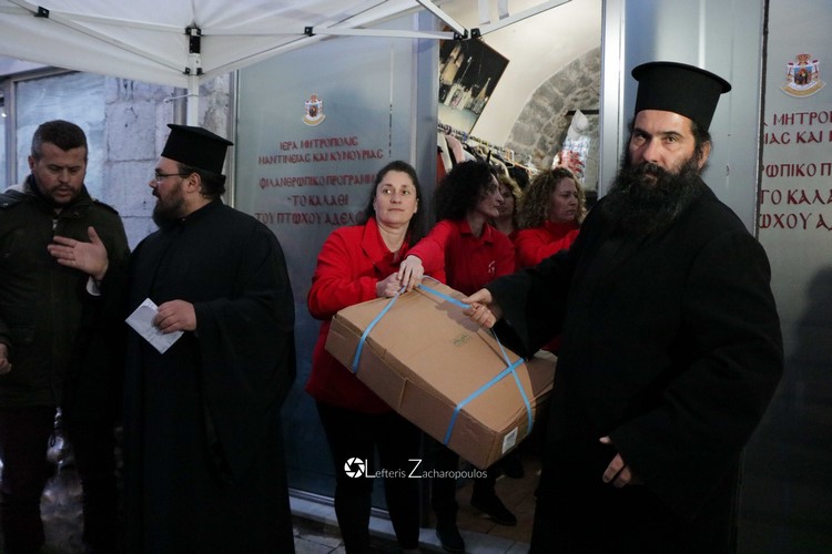 Ἐν συνεχείᾳ εὐχαρίστησε τόν Γενικό Διευθυντή τῆς μή Κυβερνητικῆς Ὀργανώσεως «ΑΠΟΣΤΟΛΗ», τήν Ἱερά Μονή Βατοπαιδίου Ἁγίου Ὄρους, τήν Ἱερά Μονή Μαλεβῆς, τίς Μονές τῆς Ἱερᾶς μας Μητροπόλεως, καθώς ἐπίσης καί ὅλους ὅσους προσφέρουν καί προσέφεραν τρόφιμα στό «ΚΑΛΑΘΙ ΤΟΥ ΠΤΩΧΟΥ ΑΔΕΛΦΟΥ», διαβεβαιώνοντας ὅτι τά τρόφιμα καί τά ἄλλα εἴδη πρώτης ἀνάγκης θά φθάσουν στίς οἰκίες τῶν συνανθρώπων μας καί θά γεμίσουν τό πασχαλινό τραπέζι τῶν δοκιμαζομένων ἀδελφῶν μας, εὐχόμενος ἐκ βάθους καρδίας εἰς πάντας καλό καί πανεφρόσυνο Πάσχα καί καλή Ἀνάσταση.