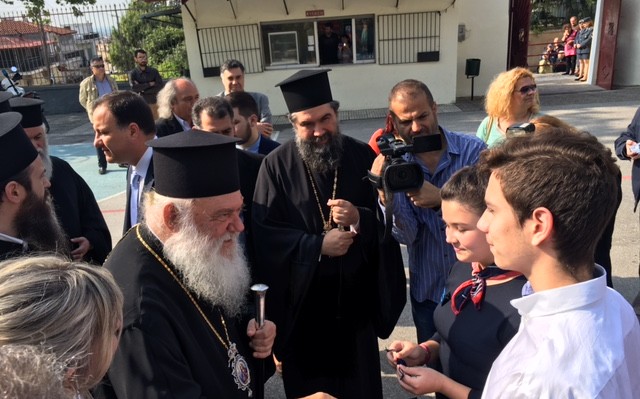 Κάλεσε, ακόμη, τους γονείς, τους καθηγητές και τους μαθητές να στηρίζουν τους θεσμούς, όπως αυτόν της οικογένειας, κάνοντας λόγο για πρωτίστως πνευματική κρίση και μετά οικονομική. Στη συνέχεια ο Αρχιεπίσκοπος μίλησε με τους μαθητές λύνοντάς τους απορίες, όπως για το προσφυγικό ζήτημα και την προσφορά της Εκκλησίας.