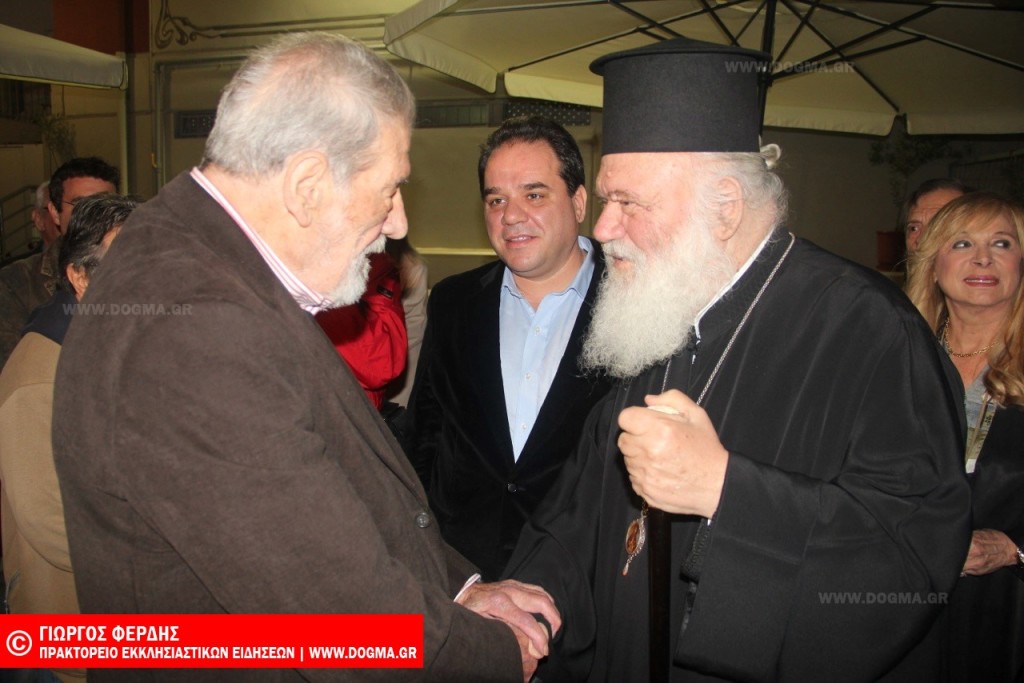 Ο κ. Ιερώνυμος έφτασε συνοδευόμενος από τον Διευθυντή της ΜΚΟ Αποστολή κ. Κωνσταντίνο Δήμτσα, όπου έγιναν δεκτοί από την ηθοποιό κα. Άννα Φόνσου ιδρύτρια του Σπιτιού του Ηθοποιού.