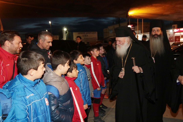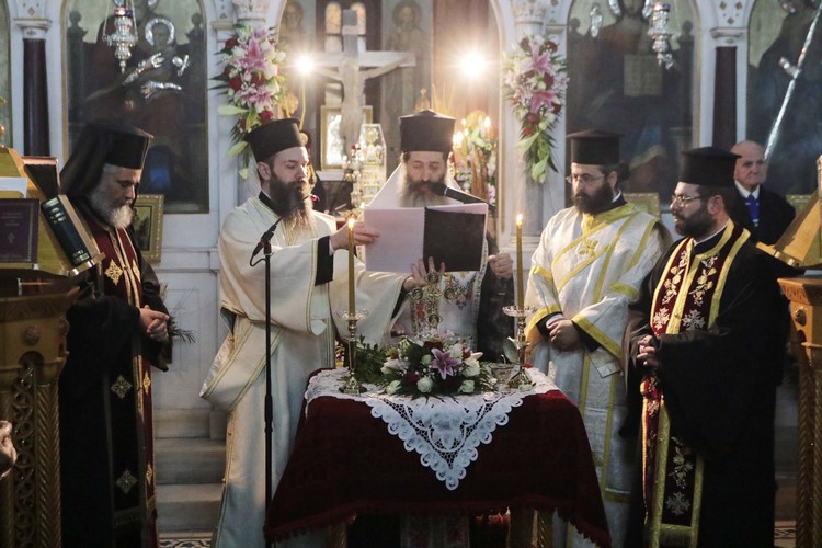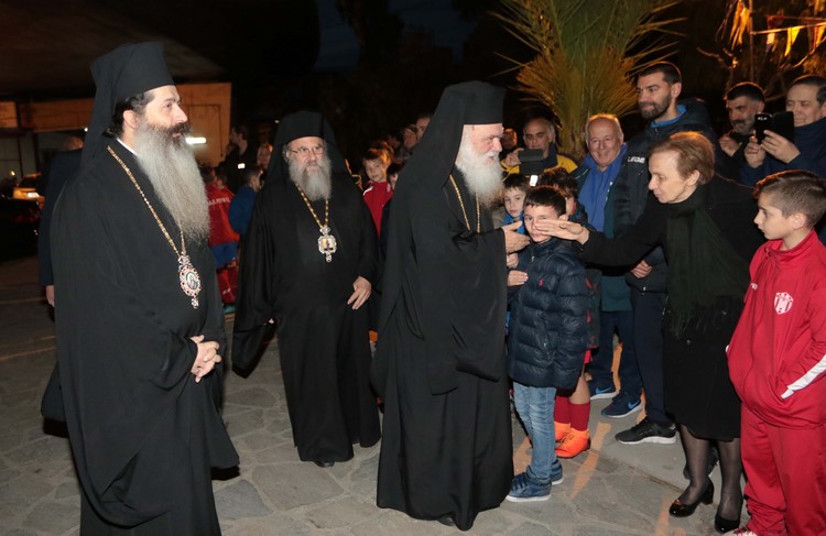 Την ακολουθία του αγιασμού τέλεσε ο Πρωτοσύγκελλος της Αρχιεπισκοπής, Επίσκοπος Θεσπιών κ. Συμεών κι αμέσως μετά τελέσθηκε ο πανηγυρικός εσπερινός με αφορμή την αυριανή εορτή των Τριών Ιεραρχών.