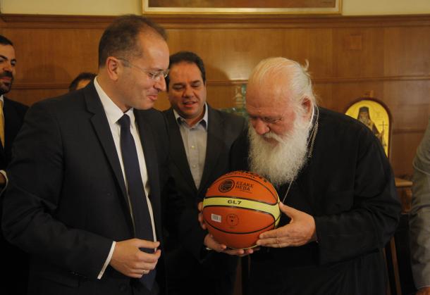 «Με συγκινείτε γιατί έπαιζα κι εγώ μπάσκετ ως φοιτητής» είπε ο Αρχιεπίσκοπος στον κ. Γιώργο Χαλβατζάκη του Ελληνικού Συνδέσμου Ανωνύμων Καλαθοσφαιρικών Εταιρειών, που από σήμερα αποτελεί έναν σημαντικό συνεργάτη της Αρχιεπισκοπής στο φιλανθρωπικό έργο της.