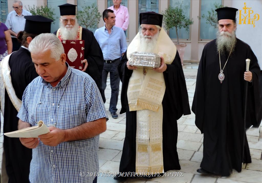 Κατ’ αρχάς, έγινε υποδοχή του Ιερού Λειψάνου του Αγίου Λουκά του Ιατρού, Αρχιεπισκόπου Συμφερουπόλεως και Κριμαίας, από τον Σεβασμιώτατο Μητροπολίτη Άρτης κ. Καλλίνικο και ακολούθησε το Μυστήριο του Ιερού Ευχελαίου στο Ιερό Ναό του Αγίου Ιωάννου του Θεολόγου της πόλεως Άρτης.