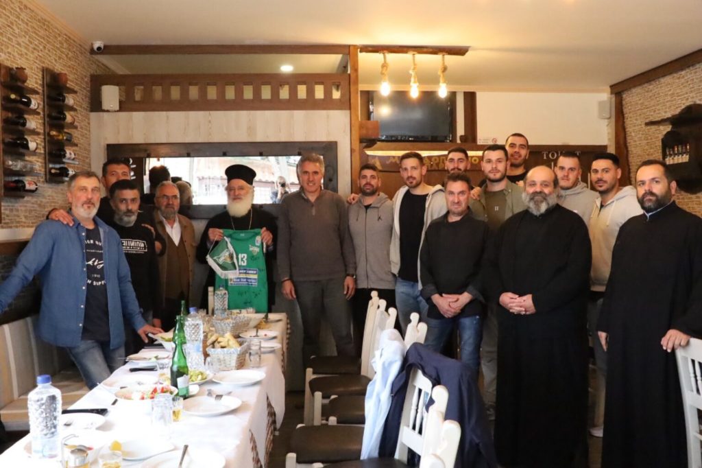 Ο Σεβασμιώτατος, συνεχάρη τους παίκτες και τους ευχήθηκε και εις ανώτερα. Η ομάδα στην συνέχεια έκανε δώρο στον Σεβασμιώτατο φανέλα με της υπογραφές των παικτών.
