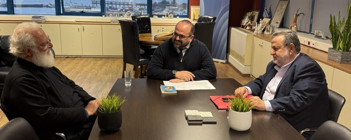 Ο Σεβ. Μητροπολιτης Αρκαλοχωρίου κ. Ανδρέας με τον Δήμαρχο Μινώα Πεδιάδος κ. Βασίλη Κεγκέρογλου, την Πέμπτη 27 Μαρτίου 2025, συναντήθηκαν με τον Αρκαλοχωρίτη Γενικό Γραμματέα κ. Μανόλη Κουτουλάκη, του Υπουργείου Ναυτιλίας, το οποίο ως γνωστόν επιχορήγησε την σεισμόπληκτη Ι. Μητρόπολη Αρκαλοχωρίου, με ποσον περι τα 100.000 ευρ. τα οποία μεταβιβάστηκαν στο Δήμο Μινώα Πεδιάδος για την εκπόνηση μελετών σε σεισμόπληκτους Ι. Ναους.