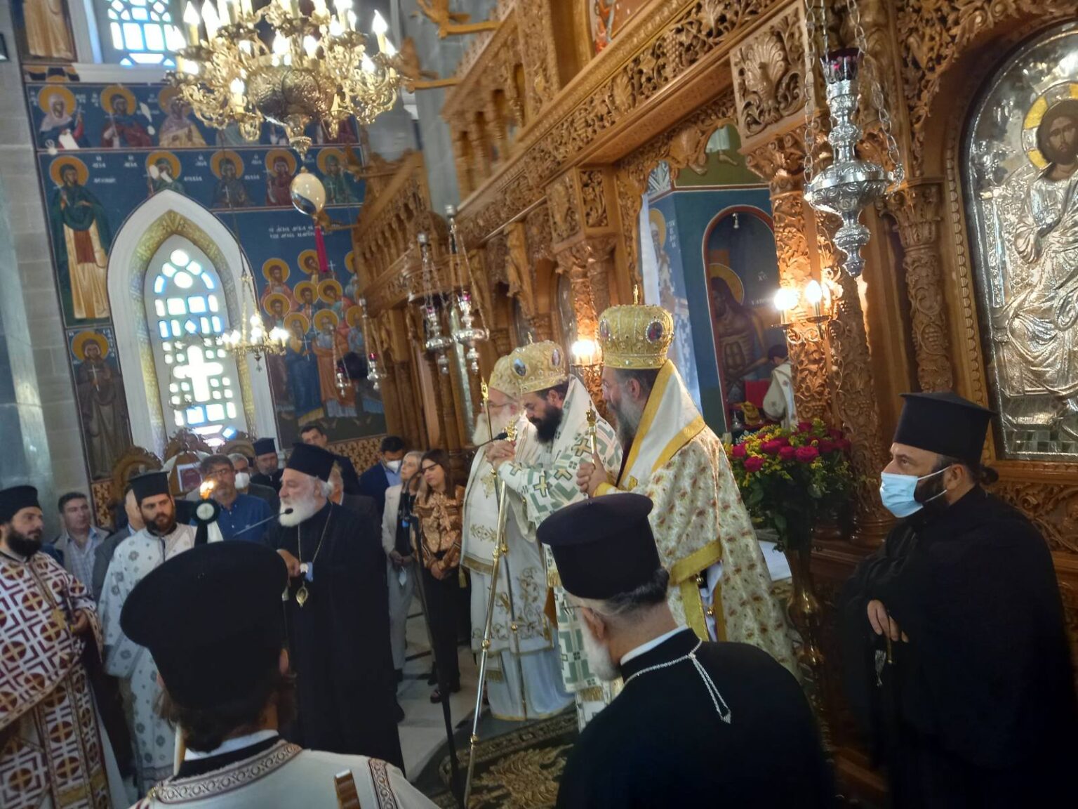 Στην πολυαρχιερατική Θεία Λειτουργία, πρεξήρχε ο εορτάζων Ιεράρχης,  κ. Γεράσιμος, ενω συλλειτούργησαν οι Μητροπολίτες Ιεραπύτνης και Σητείας κ. Κύριλλος και Ρεθύμνης και Αυλοποτάμου κ. Πρόδρομος. Συμπροσευχομένοι παρέστησαν οι Σεβ. Μητροπολίτες Αρκαλοχωρίου Καστελλίου και Βιάννου κ. Ανδρέας και ο Νέας Ζηλανδίας κ. Μύρων, μετά του Θεοφιλεστάτου εψηφισμένου Επισκόπου Κνωσού κ. Μεθοδίου. Προ της απολύσεως τελέστηκε Δοξολογία προς τιμή του Αγίου Αρτεμίου, προστάτου της Ελληνικής Αστυνομίας. Τέλος, εκ μέρους των Αρχιερέων μίλησε ο Μητροπολίτης Αρκαλοχωρίου κ. Ανδρέας όπου εξέφρασε τη δεδηλωμένη αγάπη και την εκτίμηση των αγίων Αρχιερέων προς τον εορτάζοντα Μητροπολίτη κ. Γεράσιμο και ευχήθηκε εγκάρδια ο Τριαδικός Θεός να του χαρίζει υγεία, δύναμη εξ ύψους και μακροημέρευση.