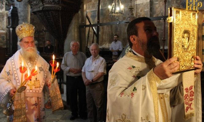 Στο πέρας της Θείας Λειτουργίας, ανεπέμφθη δέηση «υπέρ του δωρηθήναι όμβρους ειρηνικούς τη γη προς καποφορίαν».