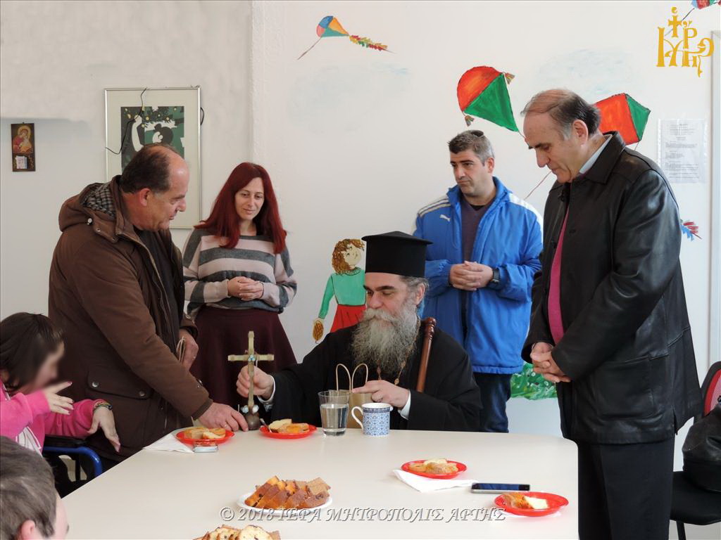 Την Τρίτη 27 Φεβρουαρίου 2018, το πρωΐ, ο Σεβασμιώτατος Μητροπολίτης Άρτης κ. Καλλίνικος, επισκέφθηκε το Κέντρο διημέρευσης-ημερήσιας φροντίδας ατόμων με αναπηρία του Συλλόγου Γονέων, Κηδεμόνων και Φίλων Ατόμων με Αναπηρία Ν. Άρτας «ΑΓΚΑΛΙΑ».