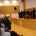 Κατόπιν, την Εκδήλωση χαιρέτισαν κατά σειρά ο Βουλευτής Ευβοίας κ. Σίμος Κεδίκογλου, οι Δήμαρχοι Χαλκιδέων κ. Χρήστος Παγώνης και Μεσσαπίων-Διρφύων κ. Γεώργιος Ψαθάς, ο πρώην Υπουργός κ. Ελευθέριος Παπαγεωργόπουλος, ο Διοικητής της Σχολής Πεζικού Χαλκίδος, Ταξίαρχος κ. Αλέξιος Οικονόμου και στη συνέχεια η Χορωδία Παραδοσιακής Μουσικής της Σχολής Βυζαντινής Μουσικής της Ιεράς Μητροπόλεως, υπό την διεύθυνση του κ. Θεοδώρου Κοκκορίκου, απέδωσε επίκαιρα Κάλαντα του Αγίου Δωδεκαημέρου, αποσπώντας το θερμό χειροκρότημα των παρευρεθέντων.