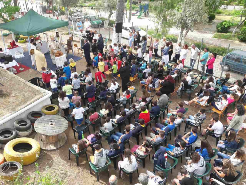 Η Θεία Λειτουργία, στην οποία συλλειτούργησαν με τον Σεβασμιώτατο Μητροπολίτη Χαλκίδος ο Αρχιμ. Νεκτάριος Ευγενικός, Ιεροκήρυξ της Ι. Μητροπόλεως, ο Πρωτοπρεσβ. Γεώργιος Μωραΐτης, Εφημέριος της Ενορίας και ο Διάκ. Νικόλαος Πριμηκύριος, με την παρουσία και τοῦ Διευθυντού Πρωτοβάθμιας Εκπαίδευσης Εύβοιας κ. Κωνσταντίνου Ζημιανίτη, του Σχολικού Συμβούλου κ. Δημητρίου Μυτάκου, της Δημοτικής Συμβούλου κ. Αικατερίνης Καλαμιώτου, εκπαιδευτικών και γονέων, ετελέσθη στον κήπο του σχολείου, τον οποίον με πολλή αγάπη, μεράκι, φαντασία και όραμα, μαθητές, γονείς και δάσκαλοι μεταμόρφωσαν σε «Κήπο των Ευχών», όπως χαρακτηριστικά των ονόμασαν.