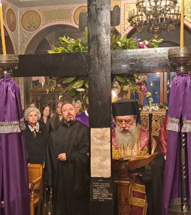 Ο Δ’ Κατανυκτικός Εσπερινός και οι Χαιρετισμοί του Τιμίου και Ζωοποιού Σταυρού τελέστηκαν το εσπέρας της 23ης Μαρτίου 2025 Κυριακής της Σταυροπροσκυνήσεως, στον Ιερό Ναό Αγίων Αποστόλων Πέτρου και Παύλου Πεύκης, χοροστατούντος του Σεβασμιωτάτου Ποιμενάρχου μας, Μητροπολίτου Κηφισίας, Αμαρουσίου, Ωρωπού και Μαραθώνος κ.Κυρίλλου, συμπαραστατουμένου υπό των εφημερίων του Ιερού Ναού και του διακόνου του. Στο πέρας των Χαιρετισμών του Τιμίου και Ζωοποιού Σταυρού, ο Σεβασμιώτατος κήρυξε το θείο λόγο αναφερόμενος στο Μυστήριο του Σταυρού, τον συμβολισμό και την αξία του στη ζωή του χριστιανού. Εν συνεχεία ερμήνευσε το σημερινό Εξαποστειλάριο: