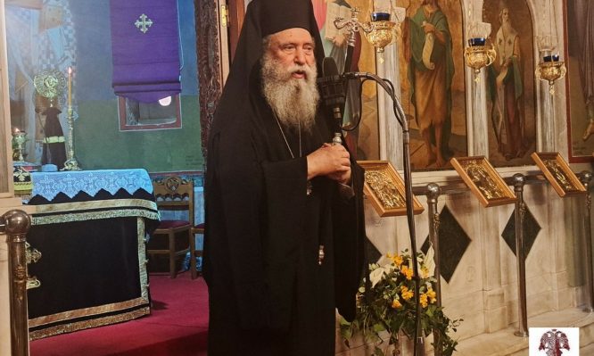 Στην μεστή νοημάτων ομιλία του, ο σεπτός Ποιμενάρχης μας εξήγησε τους λόγους για τους οποίος προβάλλει η Εκκλησία μας τον Τίμιο και Ζωοποιό Σταυρό κατά το μέσο της ευλογημένης περιόδου της Αγίας και Μεγάλης Τεσσαρακοστής. Παράλληλα, επισήμανε ότι η Σταυρική Θυσία του Χριστού αποκάλυψε την απύθμενη αγάπη του Θεού προς τον Άνθρωπο, την αξία της ανθρώπινης ψυχής, αλλά και τη δύναμη του Κακού που οφείλει κάθε χριστιανός να καταπολεμά.