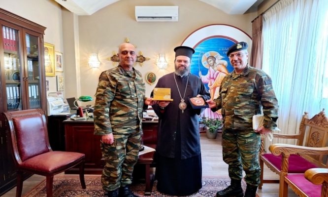Τήν Τετάρτη, 13η Μαρτίου ἐ. ἒ., ὁ νέος Διοικητής τῆς 21ης ΤΘ.Τ, Ταξίαρχος κ. Ἀπόστολος Καρατόλιος καὶ ὁ ἀπερχόμενος Ταξίαρχος Κωνσταντῖνος Ἀλεξανδρῆς, ἐν ὂψει τῆς παραδόσεως καὶ παραλαβῆς τῆς Διοικήσεως τῆς Ταξιαρχίας, πραγματοποίησαν ἐθιμοτυπική ἐπίσκεψη στόν Σεβασμιώτατο στά Γραφεῖα τῆς Ἱερᾶς Μητροπόλεως,