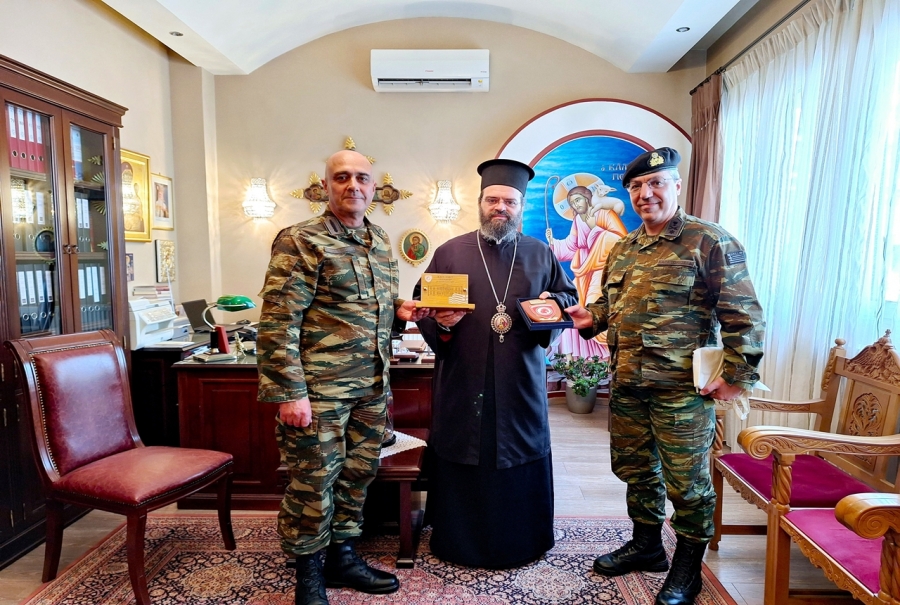 Τήν Τετάρτη, 13η Μαρτίου ἐ. ἒ., ὁ νέος Διοικητής τῆς 21ης ΤΘ.Τ, Ταξίαρχος κ. Ἀπόστολος Καρατόλιος καὶ ὁ ἀπερχόμενος Ταξίαρχος Κωνσταντῖνος Ἀλεξανδρῆς, ἐν ὂψει τῆς παραδόσεως καὶ παραλαβῆς τῆς Διοικήσεως τῆς Ταξιαρχίας, πραγματοποίησαν ἐθιμοτυπική ἐπίσκεψη στόν Σεβασμιώτατο στά Γραφεῖα τῆς Ἱερᾶς Μητροπόλεως,