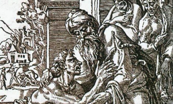 Φωτογραφία: «Η Επιστροφή του Άσωτου Υιού», 1547 (λεπτομέρεια). Ξυλογραφία του Dirck Volkertsz Coornhert. Διαστάσεις: 245 x 185 χιλιοστά. Συλλογή Rijksmuseum, Άμστερνταμ.
