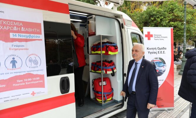 Ο Ελληνικός Ερυθρός Σταυρός (ΕΕΣ) με αφορμή την Παγκόσμια Ημέρα Σακχαρώδη Διαβήτη, υλοποίησε συντονισμένη δράση ενημέρωσης και ευαισθητοποίησης σχετικά με το Διαβήτη, το Σάββατο 16 Νοεμβρίου 2024, στην Πλατεία Συντάγματος, παρουσία του Προέδρου του Ε.Ε.Σ., Dr. Αντώνιου Αυγερινού και του Γενικού Γραμματέα, κ. Γεώργιου Σκούμα.