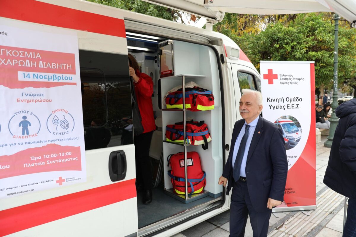 Ο Ελληνικός Ερυθρός Σταυρός (ΕΕΣ) με αφορμή την Παγκόσμια Ημέρα Σακχαρώδη Διαβήτη, υλοποίησε συντονισμένη δράση ενημέρωσης και ευαισθητοποίησης σχετικά με το Διαβήτη, το Σάββατο 16 Νοεμβρίου 2024, στην Πλατεία Συντάγματος, παρουσία του Προέδρου του Ε.Ε.Σ., Dr. Αντώνιου Αυγερινού και του Γενικού Γραμματέα, κ. Γεώργιου Σκούμα.