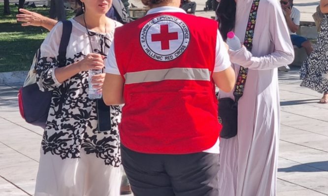 Ο Ελληνικός Ερυθρός Σταυρός ενίσχυσε τους πολίτες στο κέντρο της Αθήνας λόγω των υψηλών θερμοκρασιών