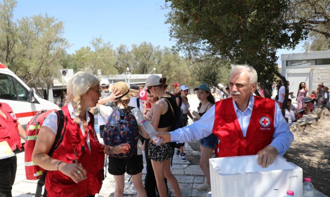 Με επιτυχία πραγματοποιήθηκε την Παρασκευή (19/7) η μεγάλη δράση υποστήριξης των επισκεπτών της Ακρόπολης λόγω καύσωνα από τον Ελληνικό Ερυθρό Σταυρό, προσφέροντας στους χιλιάδες επισκέπτες στιγμές δροσιάς, Πρώτες Βοήθειες αλλά και αναλυτική ενημέρωση για τους δυνητικούς κινδύνους που απορρέουν από τις υψηλές θερμοκρασίες.