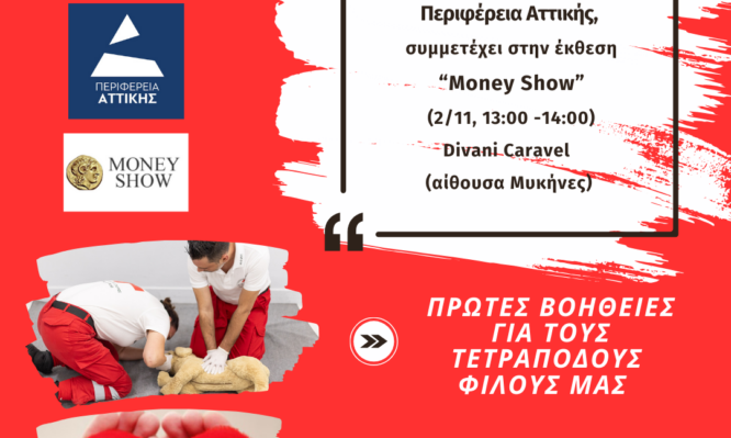 Ο Ελληνικός Ερυθρός Σταυρός (Ε.Ε.Σ.), στο πλαίσιο των συνεχών δράσεων του για τη διάδοση των Πρώτων Βοηθειών στην Ελληνική κοινωνία και σε συνεργασία με την Περιφέρεια Αττικής και την εντεταλμένη Περιφερειακή Σύμβουλο Άλσων – Πάρκων και Υγείας Ζώων κ. Ρίτα Πικρού Μωραϊτάκη, θα συμμετάσχει στην έκθεση «Money Show», στις 2 Νοεμβρίου 2024 και ώρες 13:00 – 14:00, στο ξενοδοχείο Divani Caravel (αίθουσα Μυκήνες).
