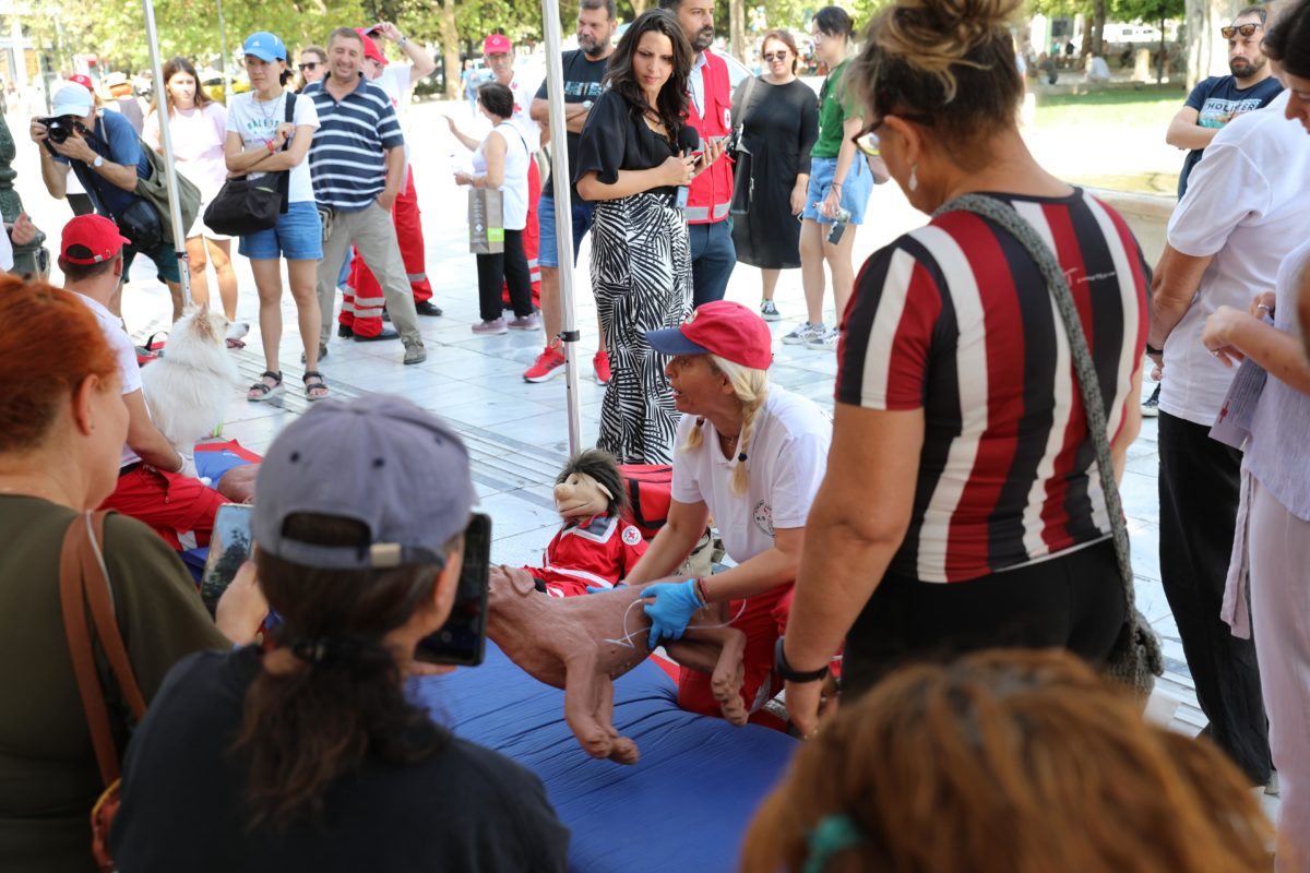 Συγκεκριμένα, εκπαιδευτές Πρώτων Βοηθειών για σκύλους του Τομέα Σαμαρειτών Διασωστών και Ναυαγοσωστών του Ε.Ε.Σ. πραγματοποίησαν επιδείξεις Πρώτων Βοηθειών για σκύλους, στο πλαίσιο του πρωτοποριακού και καινοτόμου για τα ελληνικά δεδομένα προγράμματος εκμάθησης Πρώτων Βοηθειών για σκύλους της Κυνοφιλικής Ομάδα Έρευνας και Διάσωσης (Κ9) του Ελληνικού Ερυθρού Σταυρού, το οποίο υλοποιεί αποκλειστικά ο Ε.Ε.Σ. σε όλη την Ελλάδα. Οι Πρώτες Βοήθειες σε σκύλο είναι απλές ενέργειες που μπορεί και πρέπει να κάνει οποιοσδήποτε με σκοπό την αποκατάσταση των ζωτικών λειτουργιών του σκύλου που κινδυνεύει, την αποτροπή της επιδείνωσης της κατάστασής του και τη μείωση του πόνου μέχρι να αναλάβει ο κτηνίατρος. Παράλληλα, εθελοντές όλων των Τομέων του Ε.Ε.Σ. μοίρασαν χιλιάδες ενημερωτικά φυλλάδια με οδηγίες για την κατάρτιση ενός χρηστικού και λειτουργικού φαρμακείου Πρώτων Βοηθειών για σκύλους.