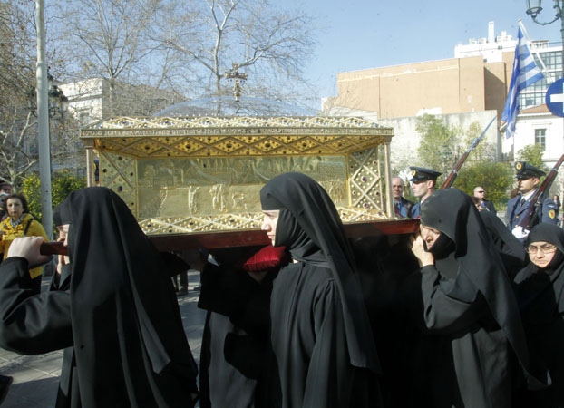Με κατάνυξη και λαμπρότητα εορτάστηκε η μνήμη της Αγίας Φιλοθέης πολιούχου των Αθηνών. Στον Καθεδρικό ναό Αθηνών φυλάσσεται το Σεπτό Λείψανο της Αγίας και οι ακολουθίες για την εορτή της τελέστηκαν στο Παρεκκλήσιο του Αγίου Ελευθερίου, λόγω των εκτελούμενων εργασιών στο Μητροπολιτικό ναό. Ακολούθησε η λιτάνευση του Σεπτού Λειψάνου και της ιερής Εικόνας της κυράς των Αθηνών.
