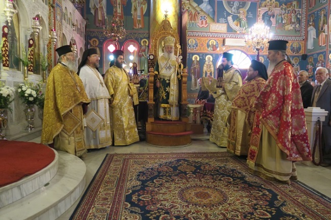 Μετά το πέρας της Θείας Λειτουργίας το Εκκλησιαστικό Συμβούλιο δεξιώθηκε τον Σεβασμιώτατο, τους Ιερείς και τους πιστούς στη μεγάλη αίθουσα του Πνευματικού Κέντρου, όπου ο Ποιμενάρχης μας είχε μια ευχάριστη και ενδιαφέρουσα επικοινωνία με τους πιστούς.