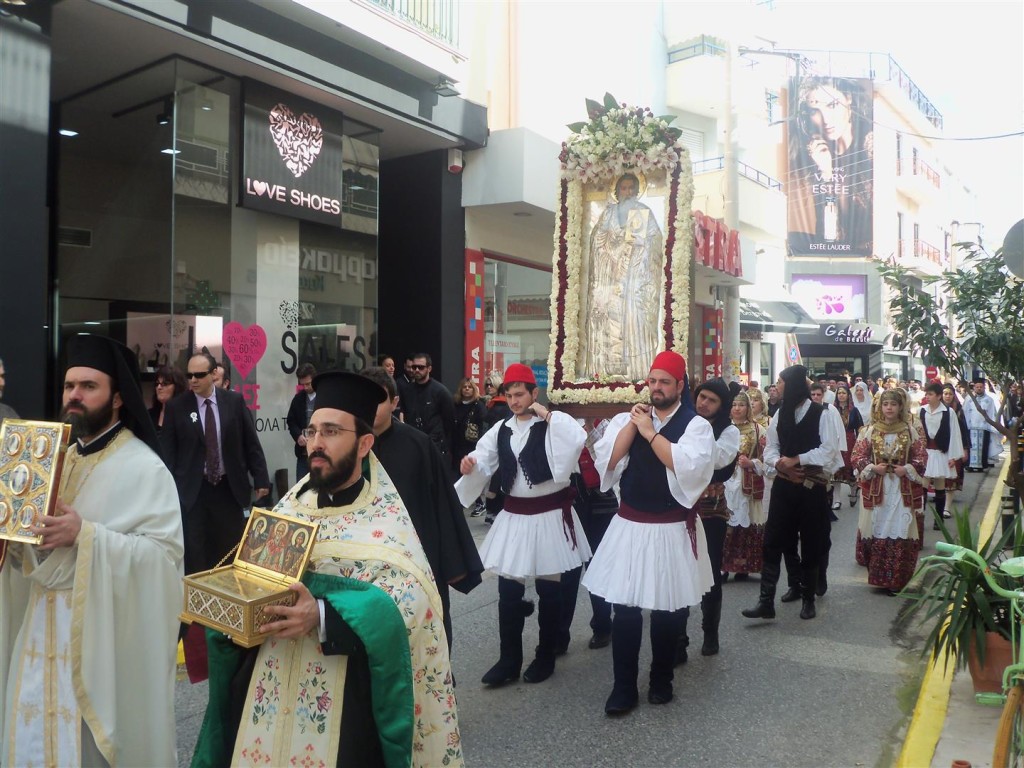 Οι εορτασμοί κορυφώθηκαν με αρχιερατικό συλλείτουργο μετά το πέρας του οποίου τελέσθηκε η λιτανεία της ιερής εικόνας του Αγίου πολιούχου και προστάτη της πόλης.