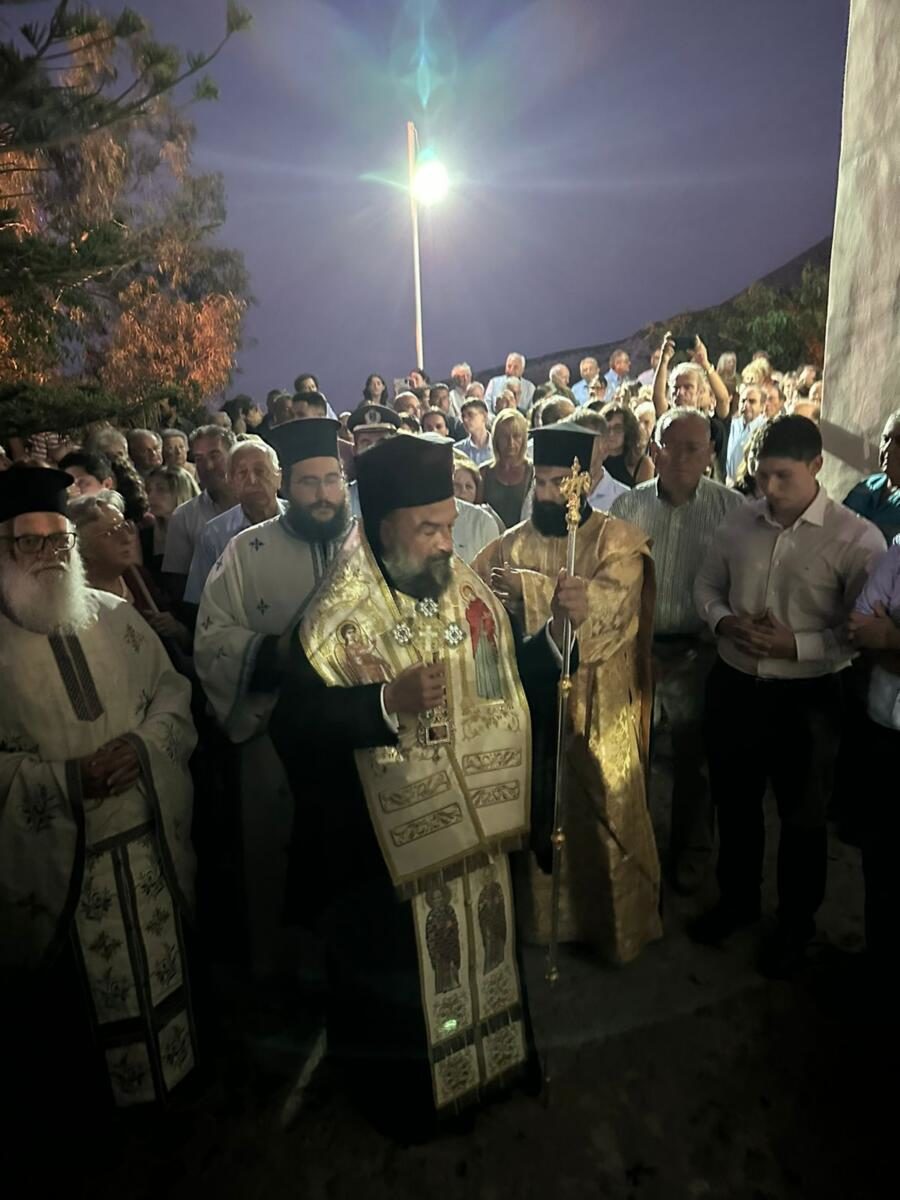 Το απόγευμα της Δευτέρας 14 Αυγούστου, ο Σεβασμιώτατος Μητροπολίτης Θήρας Αμοργού και Νήσων κ. Αμφιλόχιος τέλεσε τον Μέγα Πανηγυρικό Εσπερινό στον Βυζαντινό Ιερό Ναό Παναγίας Επισκοπής, ο οποίος χρονολογείται στον 11ο αιώνα επί Αυτοκρατορίας Αλεξίου Κομνηνού, στην Μέσα Γωνιά της Σαντορίνης, όπου συγκεντρώνονται πιστοί από όλο το νησί.