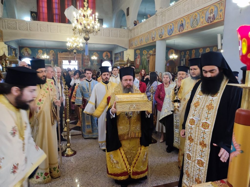 Πριν τον Εσπερινό, ο Σεβασμιώτατος Μητροπολίτης Αιτωλίας και Ακαρνανίας κ. Δαμασκηνός, επικεφαλής του Ιερού Κλήρου, των Αρχόντων και του πιστού Λαού, υποδέχθηκε στα προπύλαια του Ιερού Ναού τα ιερά Λείψανα των Αιτωλοακαρνάνων Αγίων που μεταφέρθηκαν από τους Ιερούς Ναούς και τις Ιερές Μονές που φυλάσσονται.