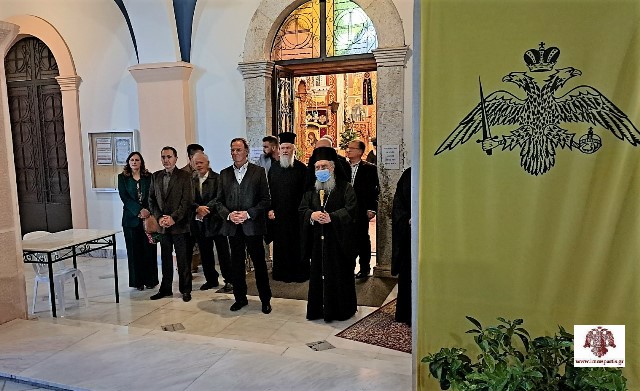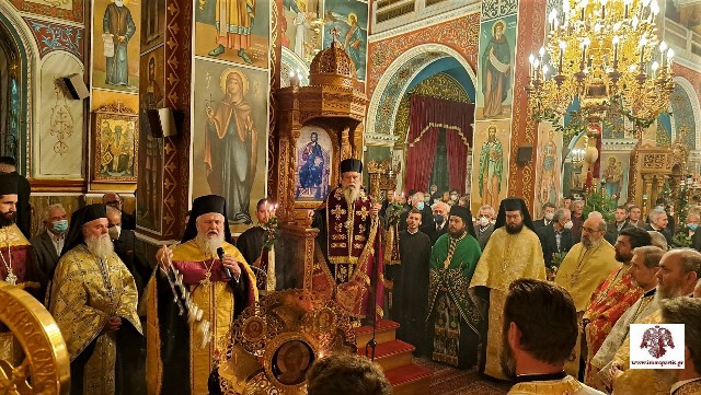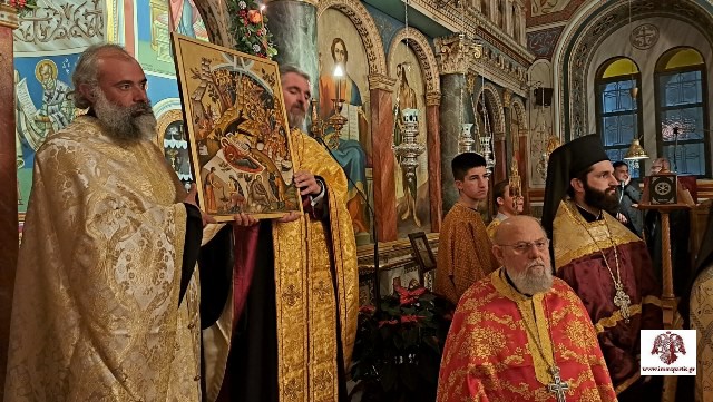Κατά τη διάρκεια της πανηγυρικής εσπερινής λατρευτικής σύναξης, ο σεπτός Ποιμενάρχης μας απευθυνόμενος στους πιστούς που είχαν κατακλύσει το Ναό, μίλησε για την ενανθρώπιση του Θεού και τη θυσία Του για τη σωτηρία του Ανθρώπου, επισημαίνοντας την επιτακτική ανάγκη να μην ακυρώνουμε, με τις πράξεις και τους λογισμούς μας, την μέγιστη αυτή προσφορά αγάπης του Δημιουργού μας, αλλά να φροντίζουμε καθημερινά να δίνουμε ομολογία πίστεως.