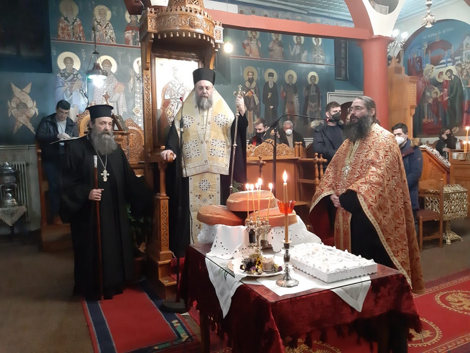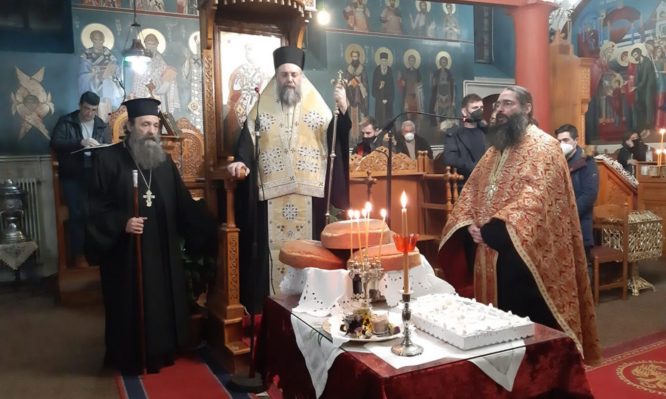 Χοροστατούντος του Μητροπολίτου Τρίκκης κ. Χρυσοστόμου, τελέστηκε ο πανηγυρικός Εσπερινός στον πανηγυρίζοντα Ι. Ναό Αγίου Αντωνίου, στον Παραπόταμο Τρικάλων, εχθές, Κυριακή 16 Ιανουαρίου 2022.