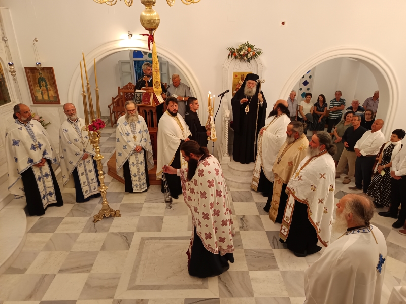 Τον Σεβασμιώτατο Ποιμενάρχη μας πλαισίωσαν ο Πρωτοσυγκελλεύων της Ιεράς Μητροπόλεως Αρχιμ. Δωρόθεος Βενετσανόπουλος, ο Ιεροκήρυκας Αρχιμ. Αρσένιος Μελισσιανός (ο οποίος κήρυξε και τον θείο λόγο), ο Ηγούμενος της Ι.Μ. Λογγοβάρδας Αρχιμ. Νικόδημος, αλλα και πλήθος ιερέων της Νήσου.