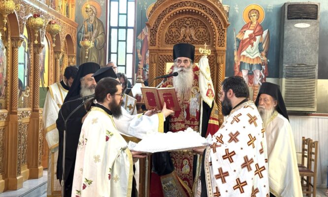 Στην Ακολουθία του Εσπερινού που τελέστηκε, επί τη εορτή του Γενεθλίου του Τιμίου Προδρόμου στον πανηγυρίζοντα Κοιμητηριακό Ναό της Ιεράς Μητροπόλεως Πειραιώς στο Σχιστό, χοροστάτησε χθες Δευτέρα 23 Ιουνίου 2025 ο Σεβασμιώτατος Μητροπολίτης Πειραιώς κ. Σεραφείμ, συγχοροστατούντος του Θεοφιλεστάτου Επισκόπου Αχελώου κ. Νήφωνος, Βοηθού Επισκόπου και Πρωτοσυγκέλλου της Ιεράς Μητροπόλεως Πειραιώς. Κατά την διάρκεια του […]