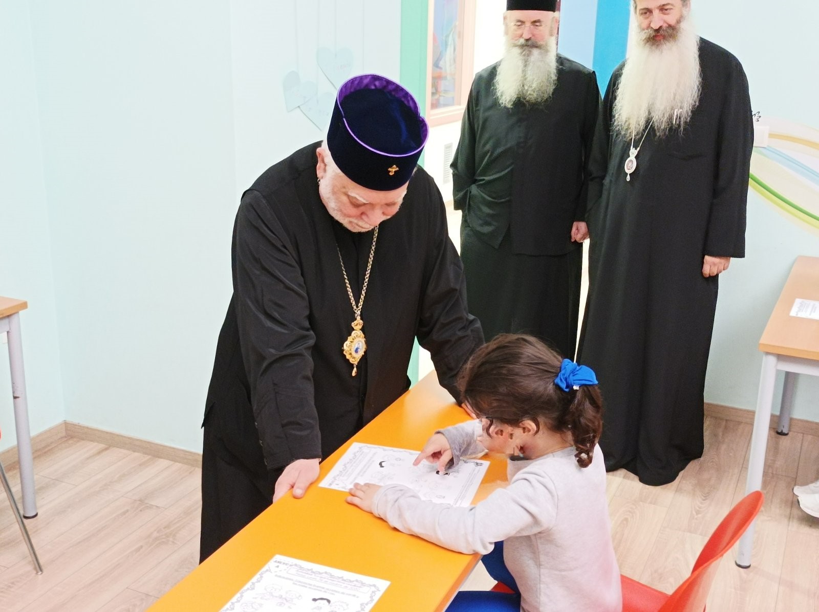 Ο Αρχιεπίσκοπος Εσθονίας κ. Στέφανος είχε την ευκαιρία, καταφθάνοντας το απόγευμα στην Ιερά Μητρόπολη, να ευλογήσει τους εργαζόμενους στις εκπαιδευτικές δομές της Μητροπόλεως καθώς και παιδιά και γονείς, που εκείνη την ώρα βρίσκονταν στο Κέντρο Δημιουργικής Απασχόλησης Παιδιού της Αποστολής «Αγιος Εφραίμ» και στο Ωδείο της Μητροπόλεως «Γερμανός ο Μελωδός».