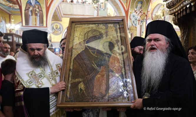 Λίγο πριν την έξοδο της ιεράς εικόνας της Παναγίας της Φανερωμένης, ο Μητροπολίτης της Προσφυγικής Μητρόπολης, κ. Ιουστίνος, απηύθυνε έκκληση προς τους πιστούς να υψώσουν θερμή προσευχή για τους συνανθρώπους μας που δοκιμάζονται από τις καταστροφικές πυρκαγιές.