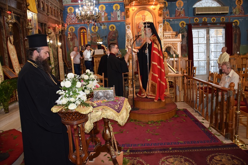Το Ιερό θησαύρισμα εκόμισε, τη αδεία και ευλογία του Σεβασμιωτάτου Μητροπολίτου Φθιώτιδος κ Νικολάου, ο Σεβασμιώτατος Μητροπολίτης Ζιχνών και Νευροκοπίου κ. Ιερόθεος, από την Ιερά Μονή αγίας Παρασκευής Ροδολείβους Σερρών, όπου φυλάσσεται.