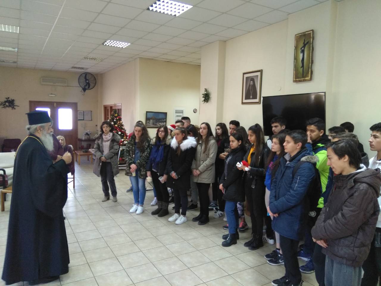 Τέλος ο Σεβασμιώτατος ευχήθηκε στα παιδιά Καλά Χριστούγεννα και πάντοτε να έχουν στην ζωή τους την ευλογία του Χριστού και όλα τα δώρα του ουρανού και μαζί  με την Αρχιερατική του ευχή  έδωσε  ως ευλογία  σε όλα τα παιδιά μία εικόνα και το Ημερολόγιο τσέπης της Ιεράς Μητροπόλεως για το έτος 2019.