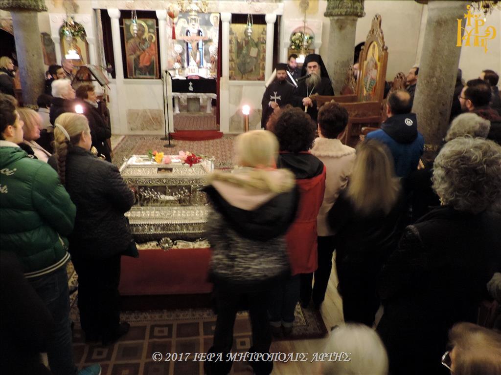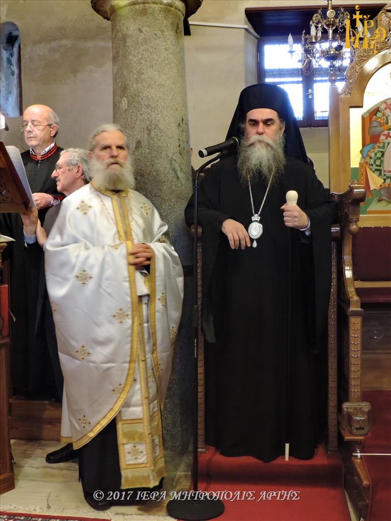 Ο Σεβασμιώτατος Μητροπολίτης Άρτης στο Κήρυγμά του ετόνισε, ότι η ευκολία δεν φέρνει την ευτυχία. Η ζωή του ανθρώπου καταξιώνεται μέσα από τους πνευματικούς αγώνες. Το πιο επίπονο αγώνισμα είναι η, διά της μετανοίας, κάθαρση της ψυχής. Οι αθλητές της μετανοίας, μέσα από τον καθαρμό της καρδίας, βλέπουν τον Θεό. Πραγματώνεται σε αυτούς ο λόγος του Κυρίου: «μακάριοι οι καθαροί τη καρδία, ότι αυτοί τον Θεόν όψονται».