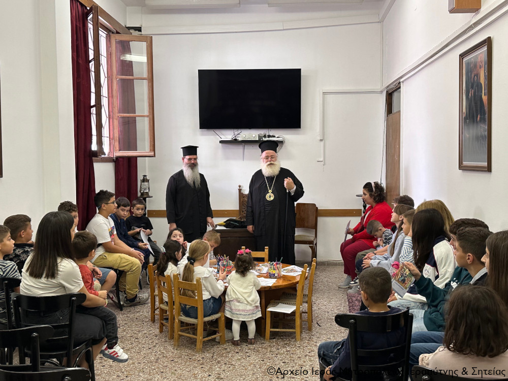 Ο Σεβ. ενημερώθηκε από τις Κατηχήτριες για το έργο της Συνάξεως, ευλόγησε τα παιδιά κάθε ηλικίας, τους ευχήθηκε ευλογημένη κατηχητική χρονιά, συνομίλησε μαζί τους και τους πρόσφερε αναμνηστική ευλογία