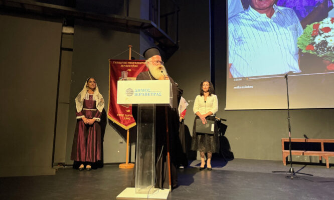 Στην τιμητική και επιτυχημένη εκδήλωση που διοργάνωσε ο Σύλλογος Μικρασιατών Ιεράπετρας το βράδυ της Κυριακής 7 Δεκεμβρίου στην κατάμεστη δημοτική αίθουσα «Μελίνα Μερκούρη» στην Ιεράπετρα παρευρέθηκε και απηύθυνε χαιρετισμό ο Σεβ. Μητροπολίτης Ιεραπύτνης και Σητείας κ. Κύριλλος. Η εκδήλωση, που παρουσίασε το Μέλος του Δ.Σ. του Συλλόγου κ. Κατερίνα Μαρκάκη, άνοιξε με την ανάγνωση του […]