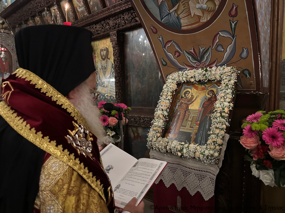 Στην ακολουθία έλαβε μέρος ο Αιδεσ. πρωτ. Ανδρέας Πιτροπάκης, Εφημέριος και προϊστάμενος της Ενορίας, ενώ παρέστη συμπροσευχόμενος ο Πανοσιολ. Αρχιμ. Αμβρόσιος Σκαρβέλης, Πρωτοσύγκελλος της Ι. Μητροπόλεως.