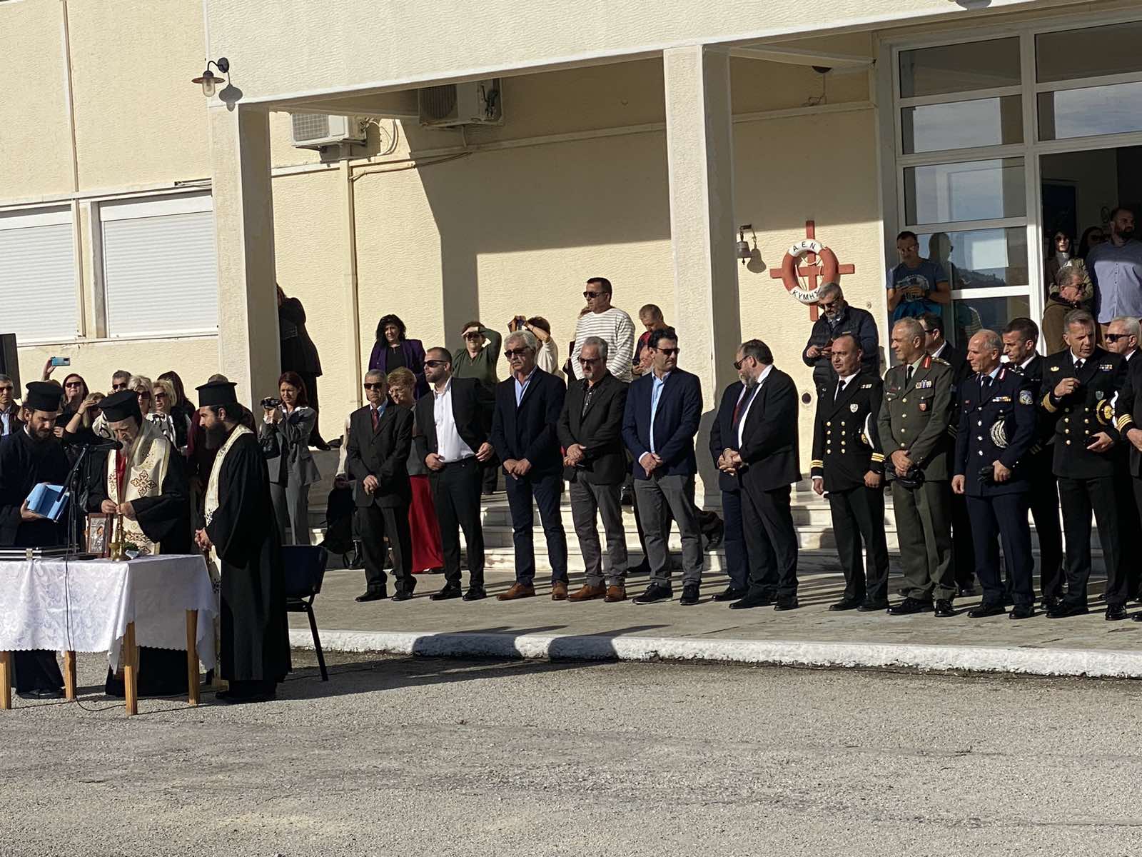 Στην ακολουθία του αγιασμού παρέστησαν ο Διοικητής της Σχολής Εμποροπλοιάρχων Κύμης οι Αξιωματικοί της Σχολής Εμποροπλοιάρχων και του Κεντρικού Λιμεναρχείου Χαλκίδος και Λιμεναρχείου Κύμης καθώς επίσης τοπικοί φορείς και οι γονείς και οικείοι των σπουδαστών.