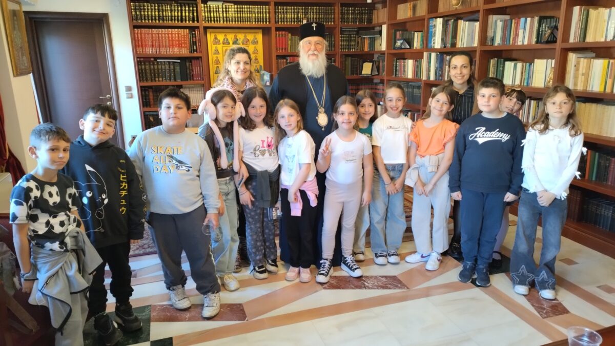 Μία πολύ όμορφη επίσκεψη δέχτηκε το μεσημέρι της Τετάρτης 2 Απριλίου 2025 ο Σεβασμιώτατος Μητροπολίτης Κερκύρας, Παξών και Διαποντίων Νήσων κ. Νεκτάριος. Στα γραφεία της Μητροπόλεως ήρθαν οι μαθητές και οι μαθήτριες της τρίτης τάξης του 2ου Σχολικού κέντρου Θιναλίων, που έχει έδρα στην περιοχή Πλάτωνες Νυμφών. Τα παιδιά συνόδευαν η διευθύντρια κ. Σπυριδούλα Κούρκουλου και η δασκάλα της τάξης.